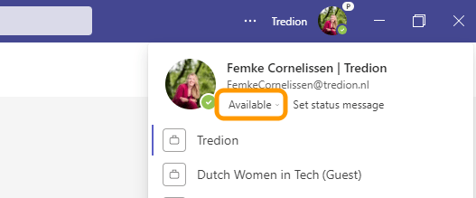 Klik op je profielfoto rechts boven in Teams.