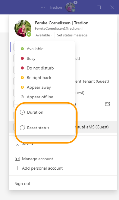 Je kunt er voor kiezen je status te resetten of een tijd een tijd in te stellen.