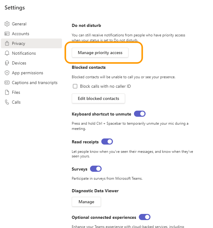 Klik op manage priority access