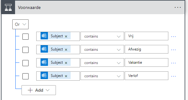 De voorwaarde kan bijvoorbeeld zijn de volgende onderwerpen. De trigegers die aangeven dat jij vrij bent of niet bereikbaar bent.
