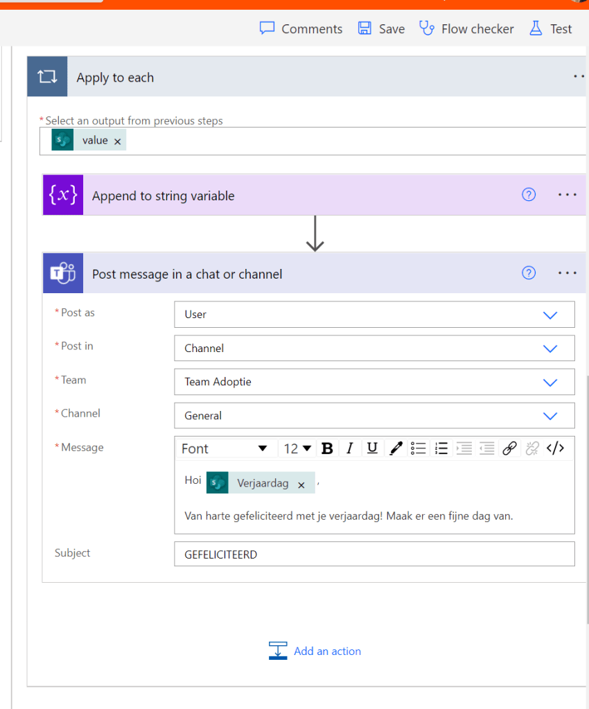 2 gedachten over “PowerAutomate gebruiken om iemand te feliciteren met verjaardag of jubileum”