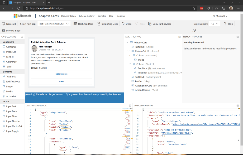 Stap 1: Ga naar https://adaptivecards.io/designer/.