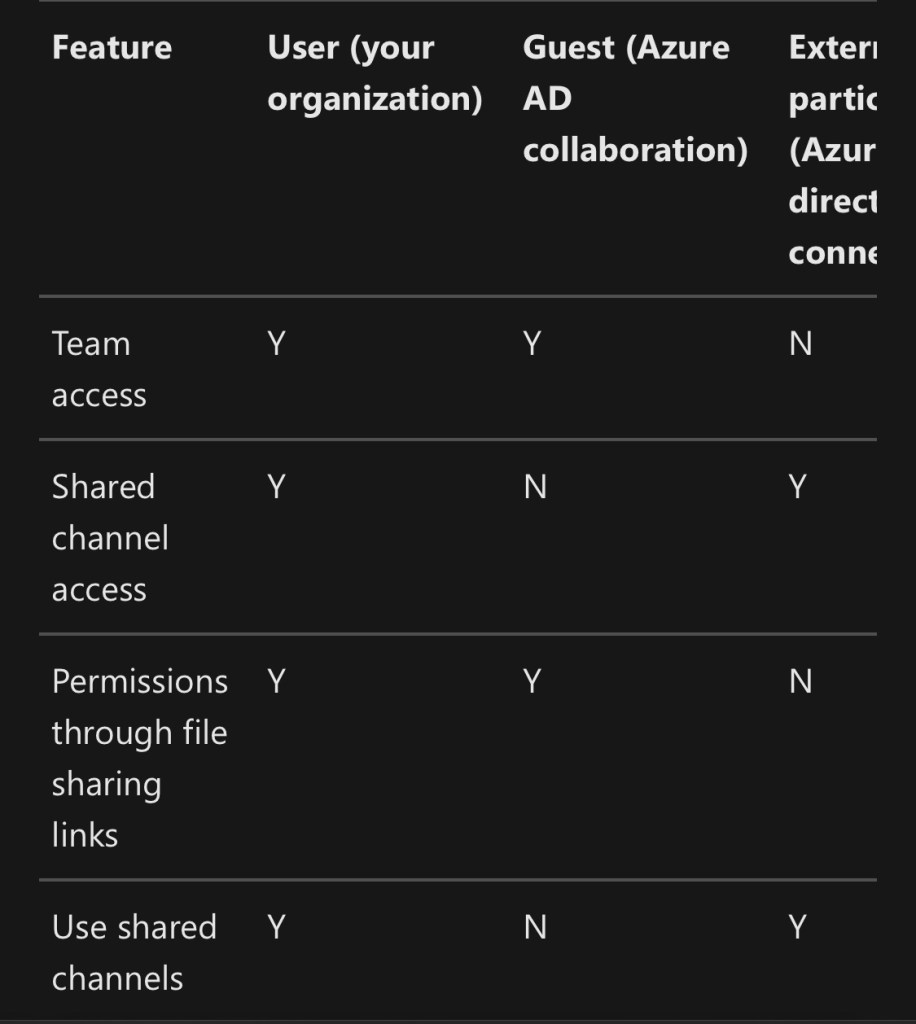 Een mooi overzicht die het verschil weergeeft tussen guest users of Azure AD connect.