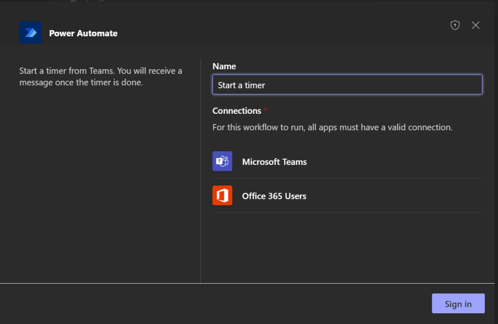 4. Pas de naam van je flow aan als je dat wilt en klikt op Sign in.