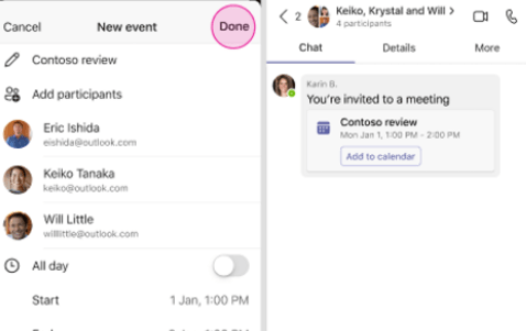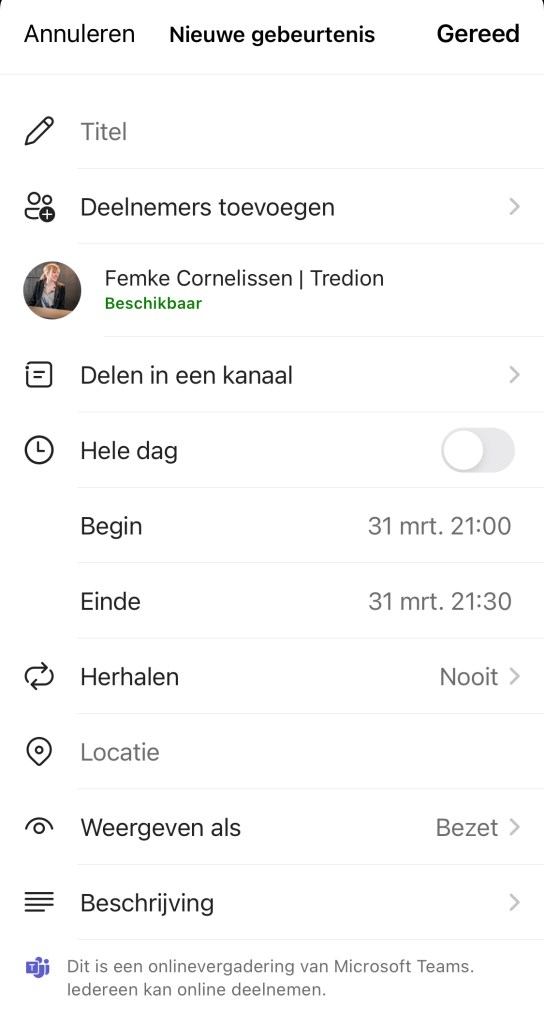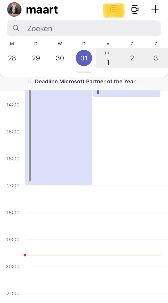 3. Een vergadering plannen vanuit je mobiele app door op het plusje te drukken in je Teams app onder Kalender.