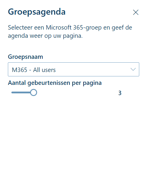 Op een SharePoint communication site (je Intranet) kun je de widget Groepsagenda toevoegen aan je pagina.