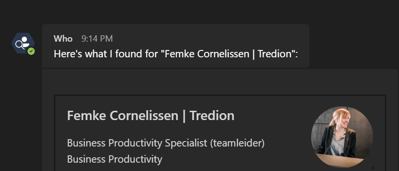 Het is zeker leuk om deze bot eens uit te proberen en de verschillende Who opties eens uit te proberen. De bot is gratis te gebruiken. Maak het makkelijker in jou organisatie om andere te kunnen vinden.