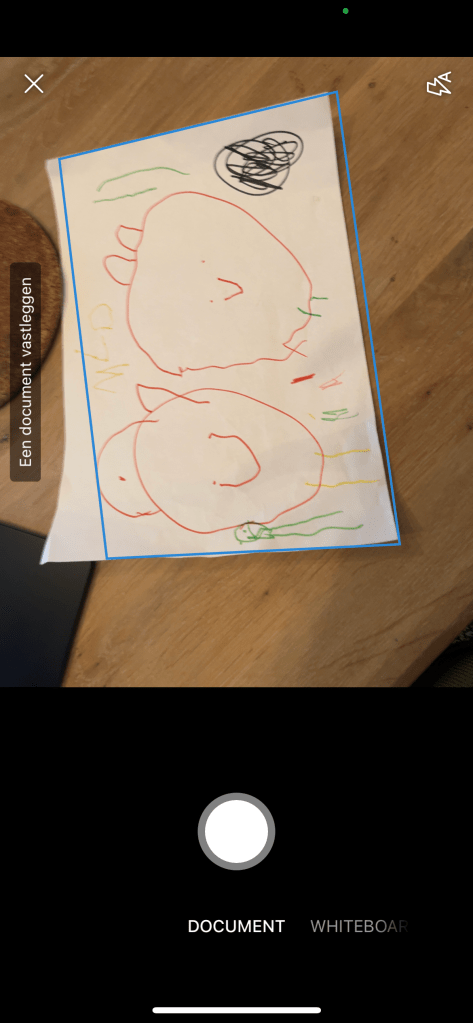 Daarnaast kun je handig gebruik maken van de camera optie in OneDrive. Deze zie ik weleens terug in het gebruik bij het scannen van bijvoorbeeld pakbonnen. Het maakt een mooie kader om een stuk papier heen waardoor je gelijk een perfecte uitsnee hebt.