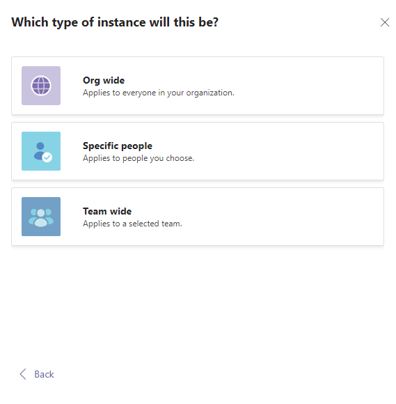 Wanneer je een Teams Admin bent krijg je de mogelijkheid te kiezen voor wie je het Sjabloon maakt en beschikbaar stelt.