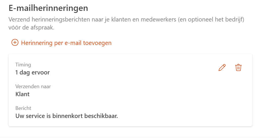 In Bookings kun je nu onder service en dan notificaties een opvolging instellen. Je kunt hier denken aan een week, een dag of een paar uur van tevoren dat je een mail wilt sturen over de boeking die men heeft gedaan en nog wat extra informatie daarin verwerken.