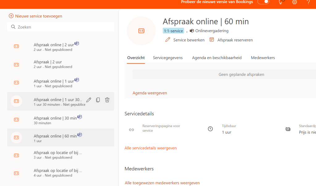 Microsoft Bookings daar ben ik behoorlijk fan van. Ik verwerk deze tooling in verschillende processen zoals een onboarding proces maar ook voor het delen van mijn agenda en mijn beschikbaarheid. Dan heb ik het nog niet over het registreren van werkplekken (straks hebben we daar natuurlijk Microsoft Places voor), auto’s, apparatuur en alles waarvan je gezamenlijk iets wilt boeken en afstemming of registratie nodig is. Ook zet ik het in voor het boeken van trainingen, workshops en events.