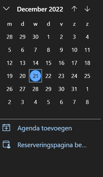 Via de online versie van je agenda in Outlook. Je klikt dan vervolgens op reserveringspagina bezoeken Deze optie heb je wanneer je werkt met een bord in Outlook online.