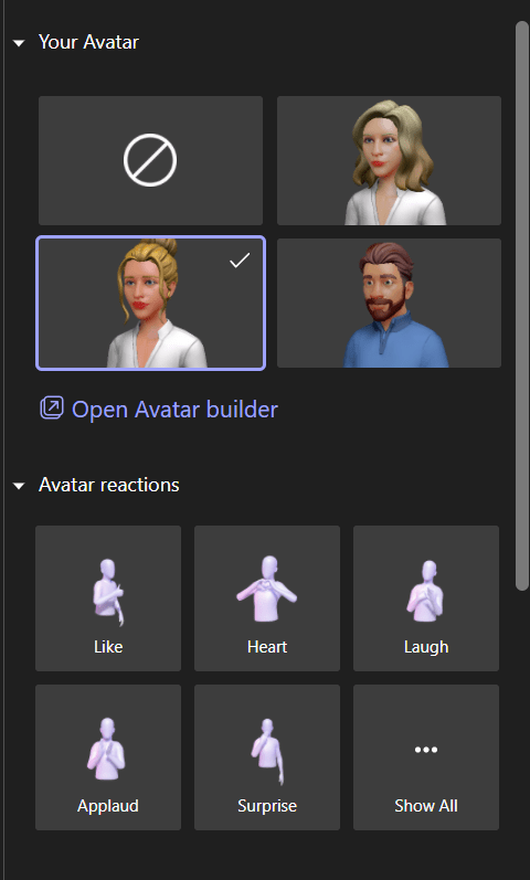 Ik geloof er ook oprecht dat de Avatar in bepaalde vergaderingen een oplossingen kan zijn en een tussenweg is van camera uit zetten of aanwezig zijn als Avatar.