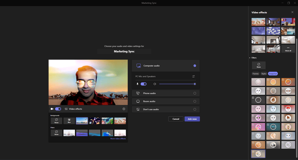 De Snapchat functionaliteit zit of al in je Microsoft Teams omgeving of zal binnenkort worden uitgerold. Je kunt kiezen uit meer dan 20 verschillende filters die regelmatig worden bijgewerkt.