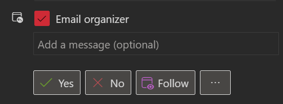 De organisator van de meeting ontvangt een melding wanneer je niet aanwezig bent maar toch graag wil volgen. Ook krijgt de organisator een melding bij de start van de meeting om de meeting op te nemen zodat andere later de meeting nog kunnen terug zien en er info beschikbaar is.